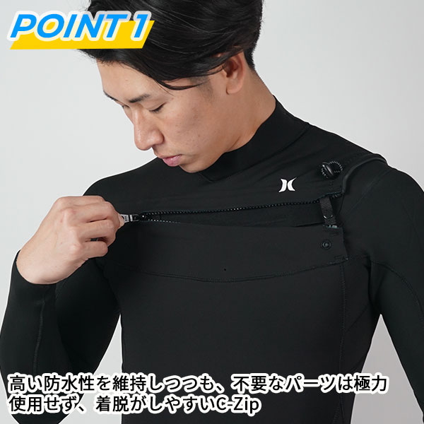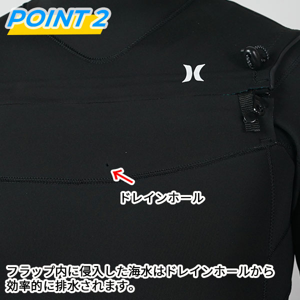 軽量で暖かく、 圧倒的な伸縮性と柔らかく包み込むような肌触りを兼ね備えたHURLEYオリジナルの生地、Exoflex V3を使用することで、まるでオーダーサイズのようなフィット感で、高い運動性と快適性を発揮。