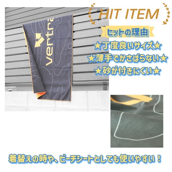 【VERTRA】バートラのビーチタオル サーフィンや海水浴に最適なVERTRA バートラ MICRO FIBER BEACH TOWELをご紹介します。マイクロファイバー素材で作られたこのビーチタオルは、軽量で砂がつきにくいのが特徴です。コンパクトにたたんで持ち運びも楽々♪