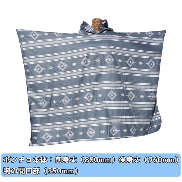ポンチョ本体:前身丈(880mm)後身丈(960mm)腕の開口部(350mm)