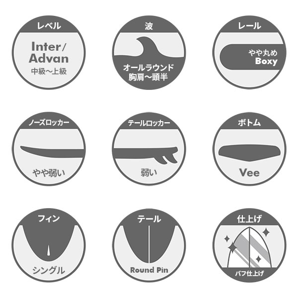 やや大きなパワーの波でのクルージングにエクスタシーを感じるミッドレングスシングルフィン。ロングアウトラインと高い位置にあるワイドなポイントのおかげで、バレルでスピードを作り出す事が簡単になり、チッパ・ウィルソンのお気に入りです。