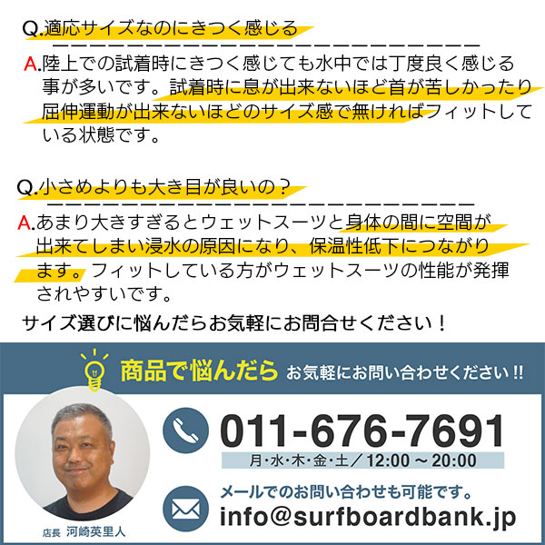 ※あまりに大きめを選ばれますと、水中での保温効果が発揮されない場合がございます。