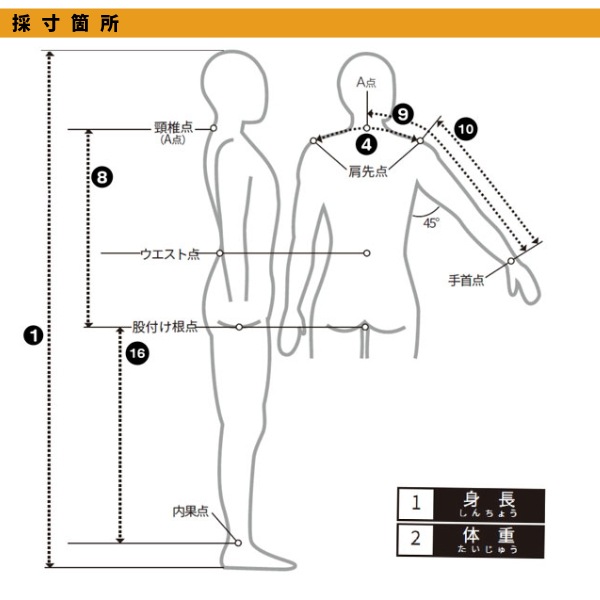 ●お選びになったサイズの胸囲・腹囲・尻囲が許容範囲内かご確認ください。