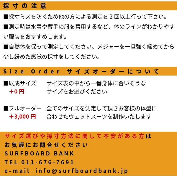 ※既成サイズウェットスーツサイズの選び方※